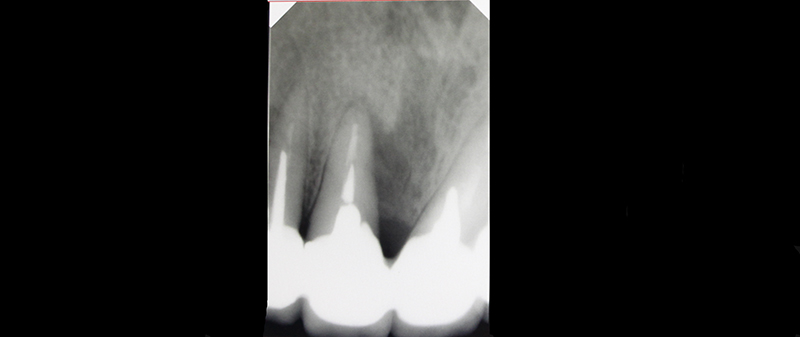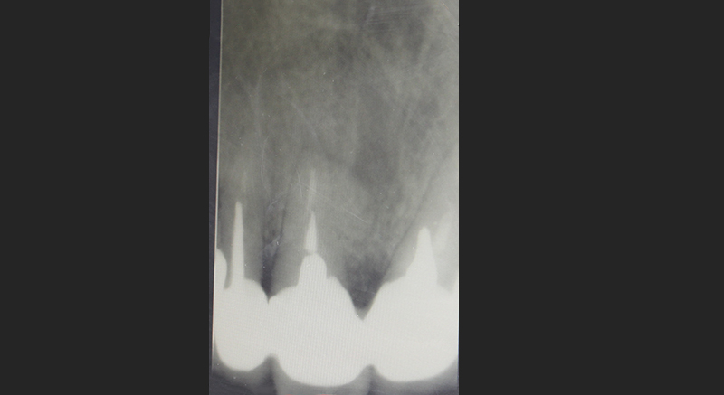 В медиальной области 11-го зуба пациентки была резорбция кости. Для лечения была проведена пародонтальная операция: