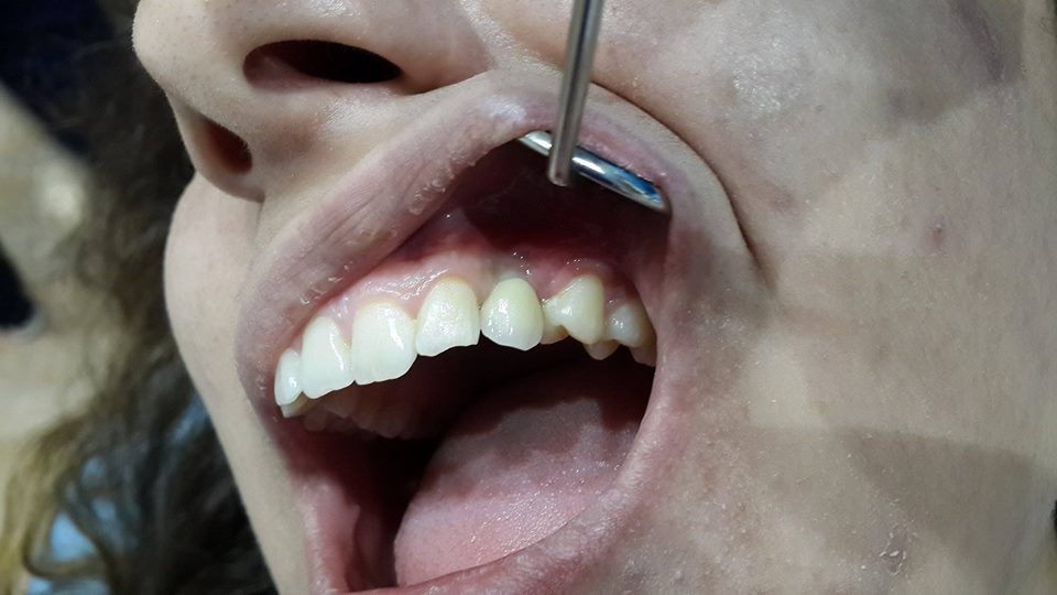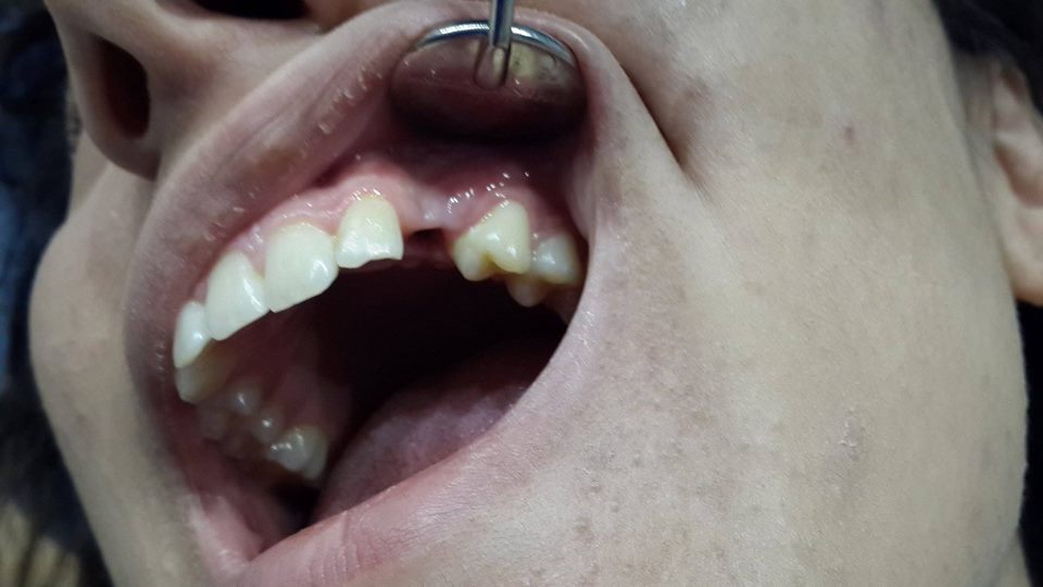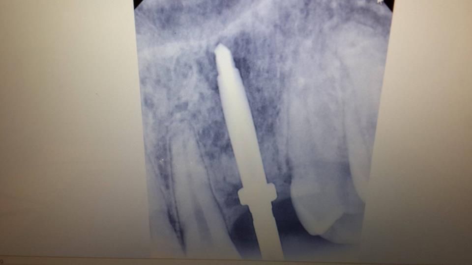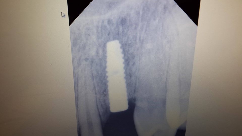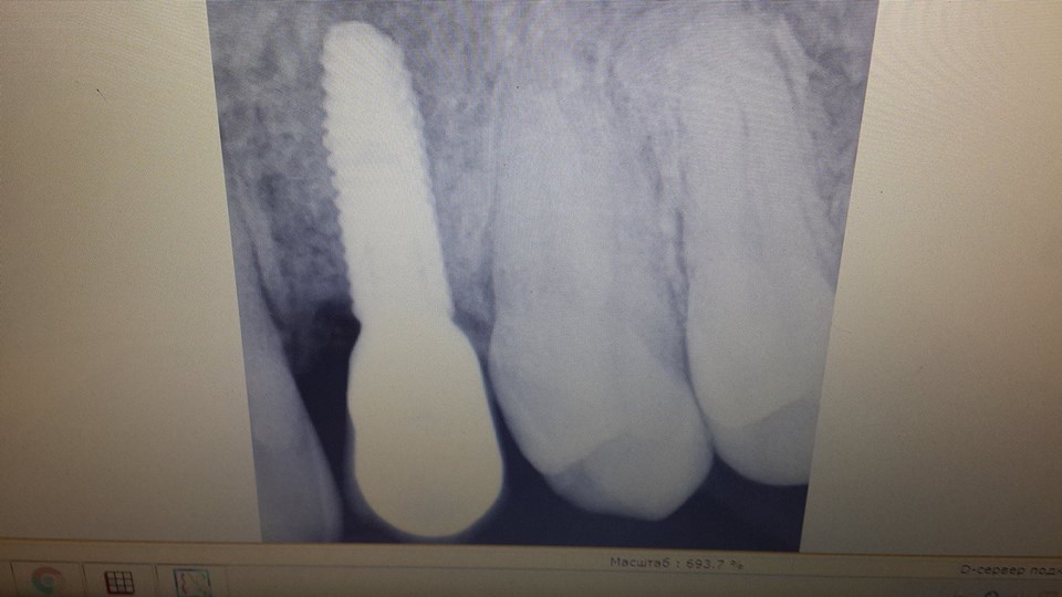To successfully restore the canine, the patient was simultaneously removed a tooth and used bone material.