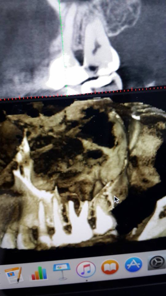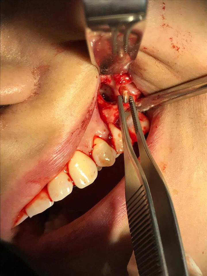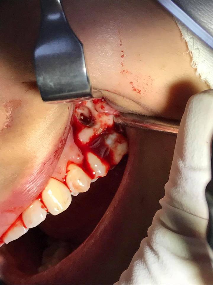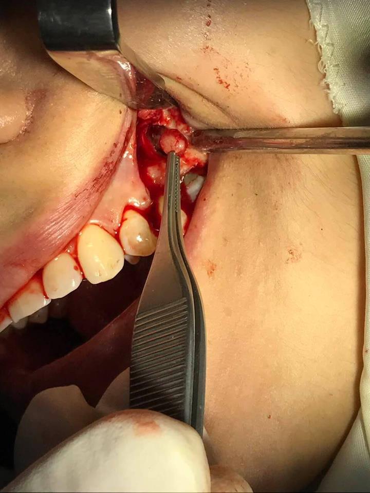 A young patient formed a cyst near the root of the left first molar, which led to the widening of the bone toward the left maxillary sinus. The cyst was removed without sinus damage, and the procedure for resection of the apex of the root was also performed. As a result of the actions taken, the tooth was preserved.