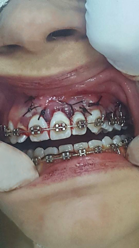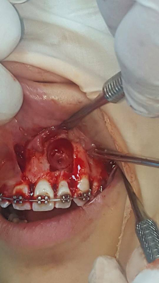 A patient undergoing orthodontic treatment was removed periapical cyst.